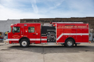 Customized storage is also available for items like stokes baskets, backboards, and little giant ladders. Whatever the need, the KME Pumper body has a solution.